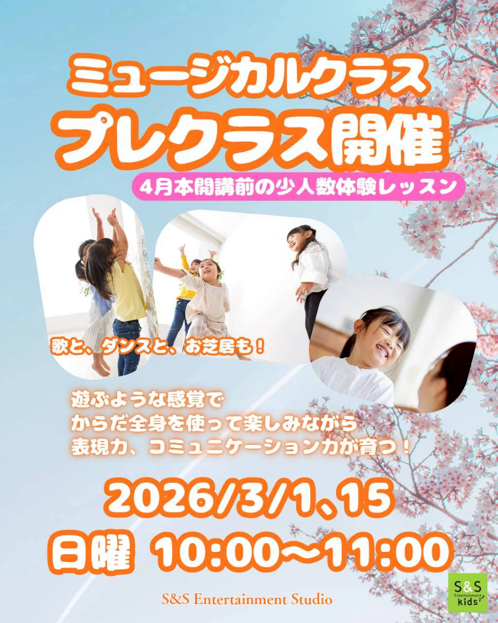 S&S Kidsでは、2026年春のキャンペーンを開催いたします。習い事を探すこの時期に是非、S&S Kidsのレッスンを体験してください🌸 <体験レッスンのお申込はこちら(ご質問・お問い合わせもお気軽に Read more about この春、今こそはじめよう!S&S Kids 春のキャンペーン[…]